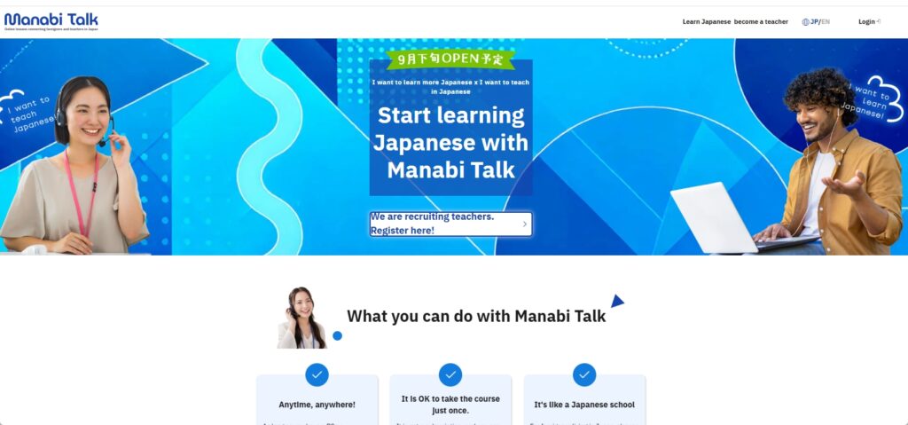 その為に、日本語学校様と同じ方法において・・・・「オンライン日本語スクール Manabi Talk」としてこれから本格的に学習者様を集めていきたいと思います。